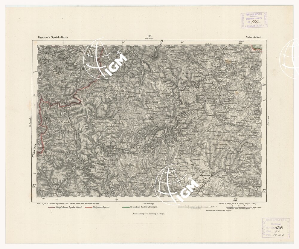 REYMANN'S TOPOGRAPHISCHER SPECIAL KARTE VON MITTEL EUROPA – SCHWEINFURT F 182