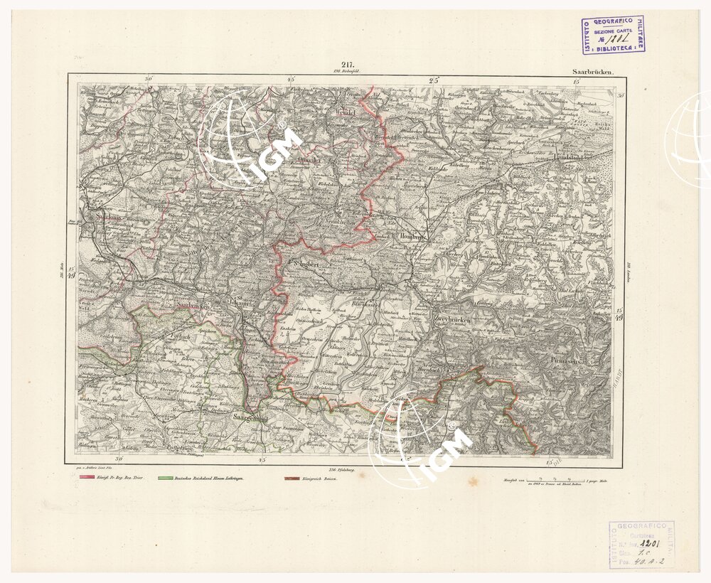 REYMANN'S TOPOGRAPHISCHER SPECIAL KARTE VON MITTEL EUROPA – SAARBRUCKEN F 217