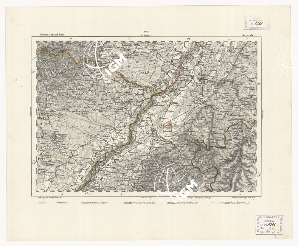 REYMANN’S TOPOGRAPHISCHER SPECIAL KARTE VON MITTEL EUROPA – KARLSRUHE F 237
