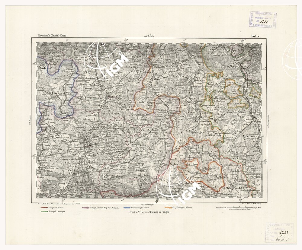 REYMANN'S TOPOGRAPHISCHER SPECIAL KARTE VON MITTEL EUROPA – FULDA F 163