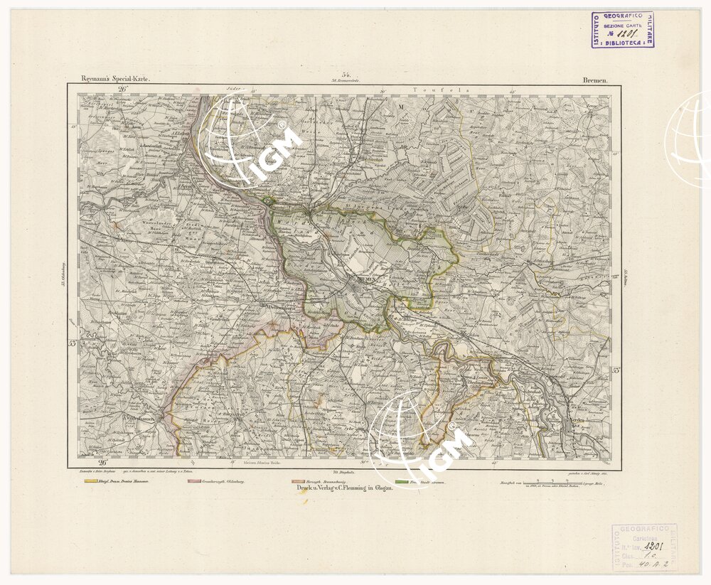REYMANN'S TOPOGRAPHISCHER SPECIAL KARTE VON MITTEL EUROPA – BREMEN F 54