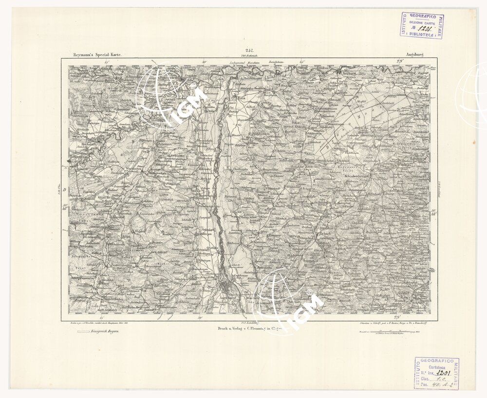 REYMANN'S TOPOGRAPHISCHER SPECIAL KARTE VON MITTEL EUROPA – AUGSBURG F 257