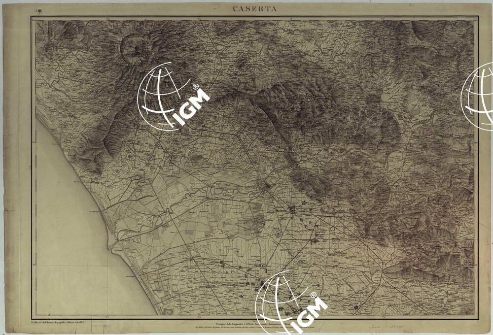 La copia N° 79 d’inv. gen., di appartenenza alla Biblioteca, consta dei fogli, in duplicato N: 1; 2,;3 (Gaeta, Caserta, Napoli) pubblicati dal Reale Officio Topografico rispettivamente nel 1858, 1875 e 1839. Questo foglio riporta la data 1875.