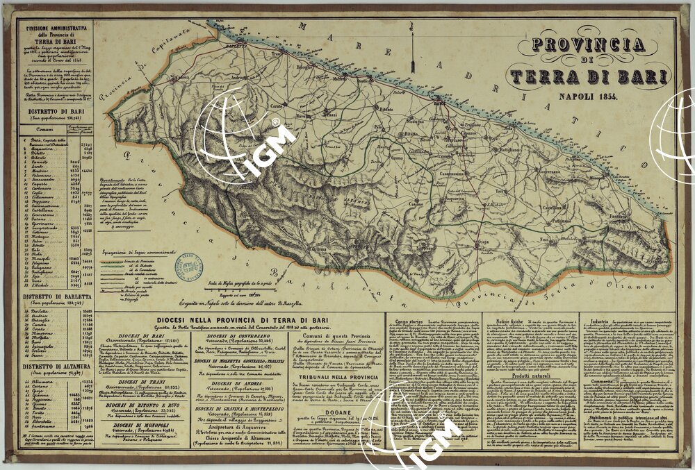CARTA AMMINISTRATIVA DEL REGNO DELLE DUE SICILIE DIVISA IN SINGOLE PROVINCIE – PROVINCIA DI TERRA DI BARI.