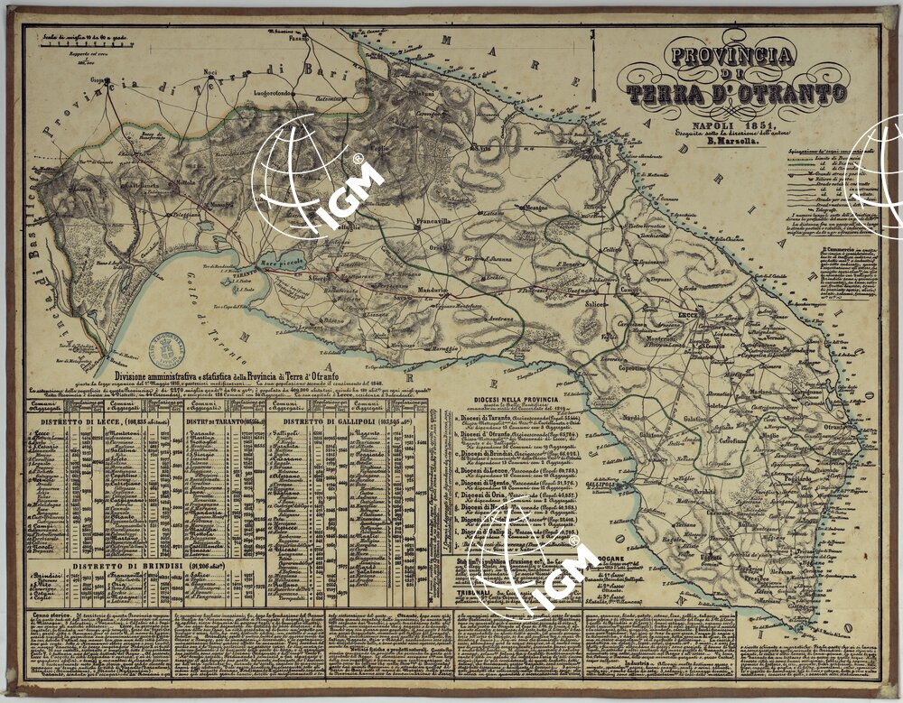 CARTA AMMINISTRATIVA DEL REGNO DELLE DUE SICILIE DIVISA IN SINGOLE PROVINCIE – PROVINCIA DI TERRA D’OTRANTO.