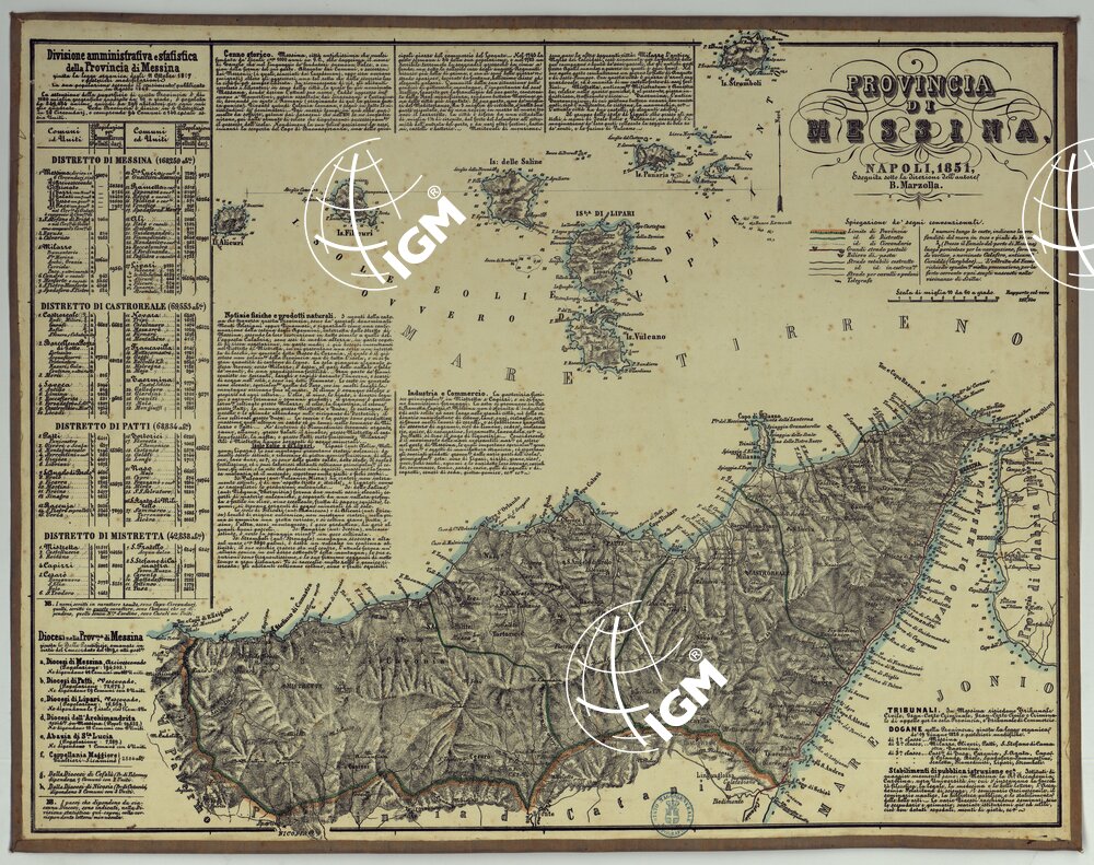 CARTA AMMINISTRATIVA DEL REGNO DELLE DUE SICILIE DIVISA IN SINGOLE PROVINCIE – PROVINCIA DI MESSINA.