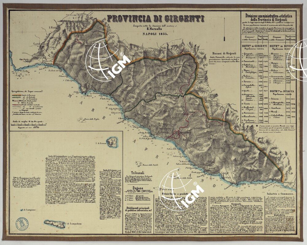 CARTA AMMINISTRATIVA DEL REGNO DELLE DUE SICILIE DIVISA IN SINGOLE PROVINCIE – PROVINCIA DI GIRGENTI.