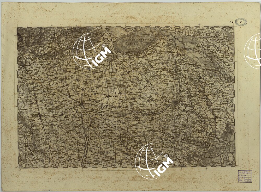 Carta in quarantadue fogli compresi il titolo e il quadro dei segni convenzionali. Essa venne pubblicata dall’I.G.M. Austriaco, in Milano sulla base, per la parte geodetica, dei lavori in precedenza eseguiti dal Deposito della Guerra di Milano (Regno Italico-Periodo Francese e di quelli dell’Istituto Austriaco stesso, e per la parte topografica sul ricco materiale raccolto dal “Deposito” sopra citato e sulle mappe catastali convenientemente ridotte alla scala di 1:28.000. Proiezione adottata quella di cassini con centro di sviluppo la guglia del Duomo di Milano (45° 27′ 34 “, 5 lat. nord e 36° 51/ 16”, 6 long. est dall’Isola del Ferro). Disegno ed incisione su rame con orografia rappresentata con fine tratteggio a luce zenitale. Gli abitati sono distinti in base alla loro importanza amministrativa con indicazione dei luoghi fortificati. Le strade sono distinte in cinque classi: le ferrovie in tre. Sono indicati i canali navigabili e d’irrigazione. La carta mostra inoltre colture, brughiere, pascoli, prati, alpi, stazioni di posta, fiere e mercati, passaggi e ponti sui fiumi, costruzioni e case isolate, miniere, fabbriche, cave, ecc., confini politici e amministrativi. Altri segni convenzionali si riferiscono ai porti e alle navigazioni dei fiumi. Gli scandagli sono calcolati in piedi di Parigi. Il Foglio 2 contiene il quadro dei segni convenzionali. Altri fogli contengono quadri statistico-amministrativi per la Lombardia e per il Veneto, quadri di unione per le due provincie alla scala 1:1.036.800, il prospetto dei punti trigonometrici e delle elevazioni, ecc. Questa carta è da considerarsi opera essenzialmente italiana poichè eseguita e diretta da italiani, costituì con le carte consimili dei Ducati di Modena e di Parma, della Toscana e dello Stato Pontificio, che ne sono il complemento, la base fondamentale della topografia di gran parte della penisola fino a che non si ebbe la nuova carta topografica ufficiale di Italia.
