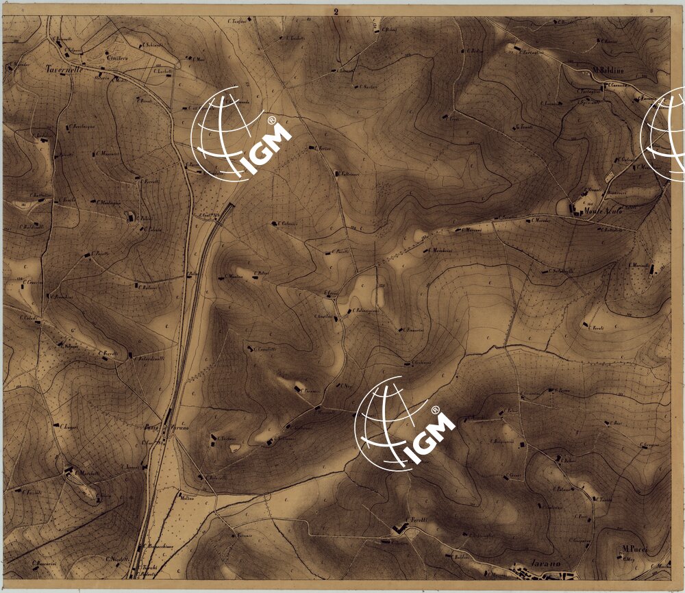Il titolo non è presente sulla carta. Riproduzione in litografia della carta Docum. n. 9613 Cart. d’Arch. n. 69. Carta in otto fogli quattro su tela e quattro su carta.