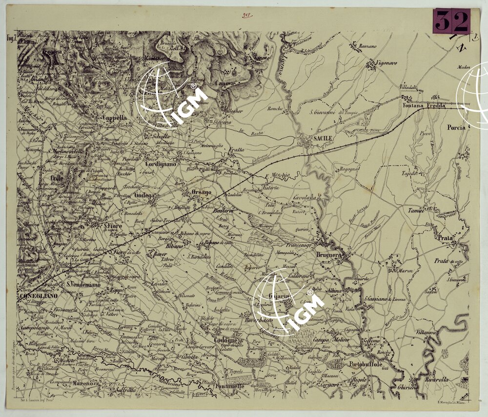 TOPOGRAFIA DELLA PROVINCIA DI TREVISO PER OPERA DELL’ING. ARCH. CIV. D’AGOSTINO CASSINIS MEDIANTE LA FOTOGRAFIA DALLA CARTE DELL’ISTITUTO GEOG. MILIT. DI VIENNA TRADOTTA IN SCALA DI 1 43,200 E RETTIFICATA SECONDO LE VARIAZIONI AVVENUTE FINO AL 1876.