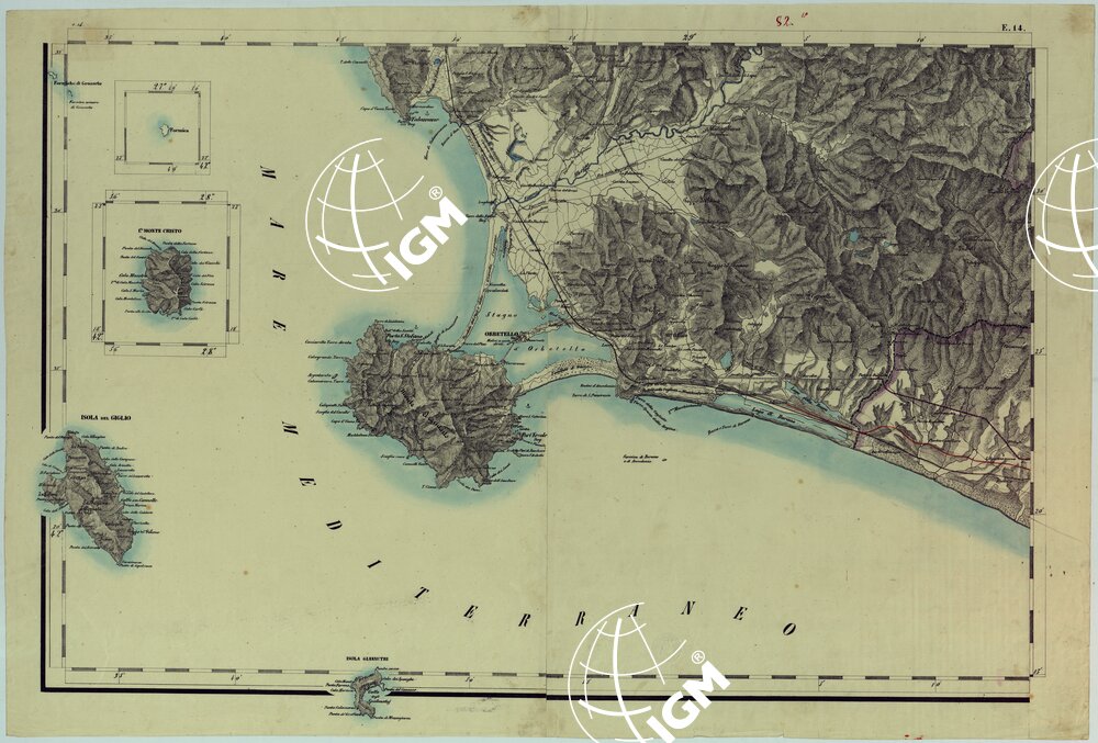 Dodici fogli estendentisi da radicofani (nord) a terracina (sud) e dal Lago di Fucino (est) al Monte Argentario (ovest). Riproduzione autografica con colori a mano per le circoscrizioni. Uno dei fogli contiene un prospetto di quote altimetriche di vari punti trigonometrici nel Granducato di Toscana.