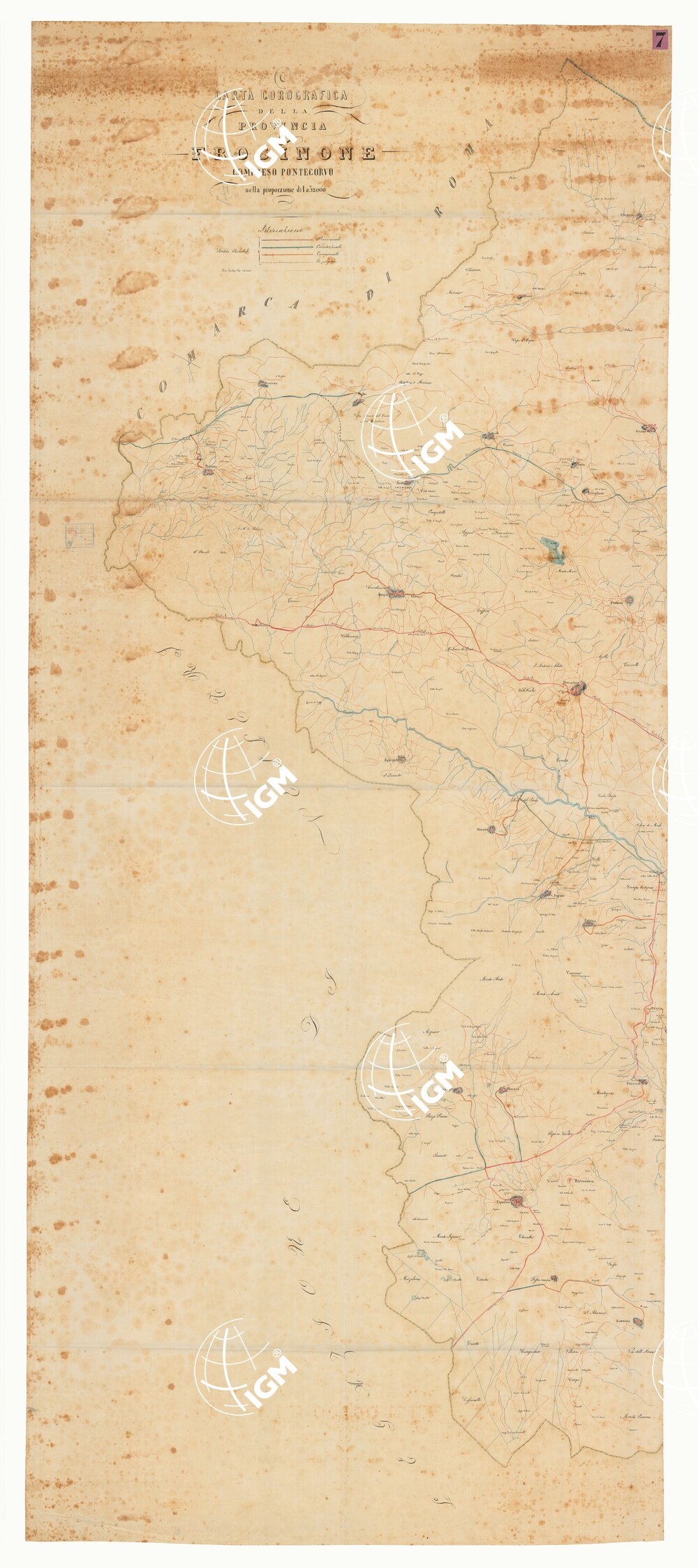 Due fogli disegnati su tela lucida con abitati in rosso, acque in azzurro, strade in giallo. Senza data né firma.