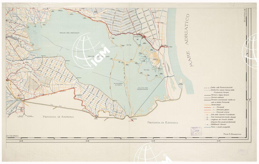 Autore Prof. E. Scanavini. Editore Ufficio Tecnico Amministrativo Provinciale. Rappresentazione orografica planimetrica. Tipo di stampa policroma.