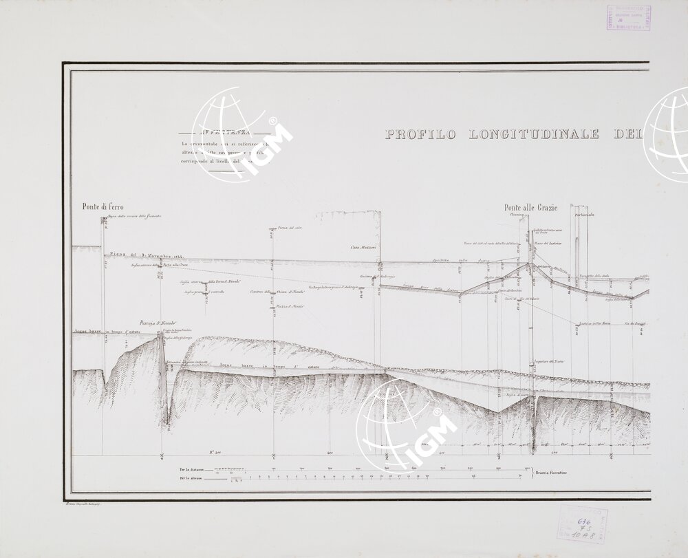 PROFILO DI LIVELLAZIONE DELLA CHIANA E DELL'ARNO DALL'ARGINE DI SEPARAZIONE PRESSO CHIUSI SINO AL MARE E DELLA SIEVE DA S. PIERO A SIEVE SINO AL SUO SBOCCO IN ARNO – FOGLIO 4 – Profilo longitudinale del fiume Arno entro Firenze – parte 1