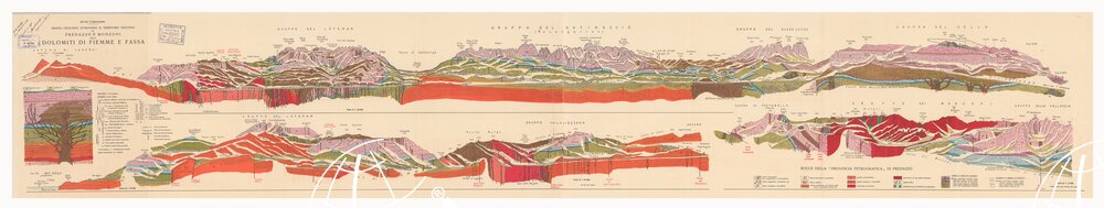 Carta raffigurante i profili geologici delle montagne e con la spiegazione dei vari colori. Silvio Vardabasso. Società Cooperativa Tipografica, Padova.