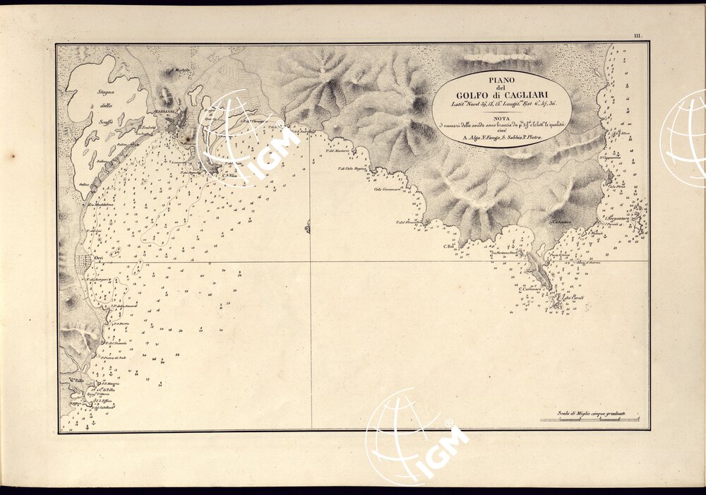 PORTOLANO DELLA SARDEGNA – CARTA IDROGRAFICA DELLA SARDEGNA LEVATA DAL CAVALIERE GIUSEPPE ALBINI CAPITANO DI VASCELLO NELLA MARINA DI S.M. SARDA – PIANO del GOLFO di CAGLIARI TAVOLA III.