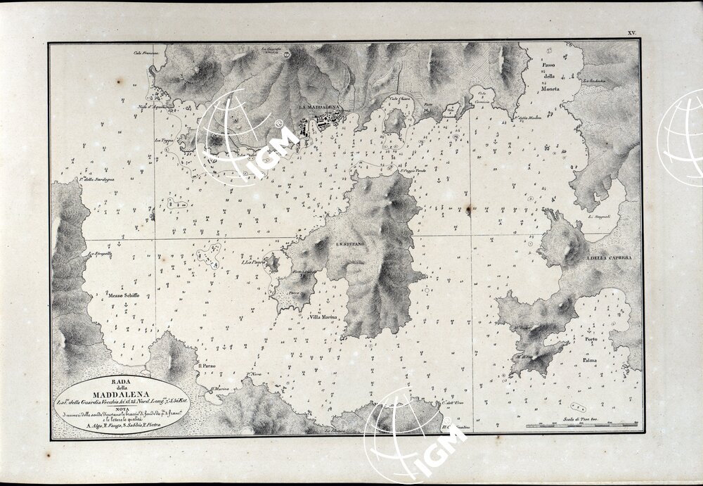 PORTOLANO DELLA SARDEGNA – CARTA IDROGRAFICA DELLA SARDEGNA LEVATA DAL CAVALIERE GIUSEPPE ALBINI CAPITANO DI VASCELLO NELLA MARINA DI S.M. SARDA – RADA DELLA MADDALENA TAVOLA XV.
