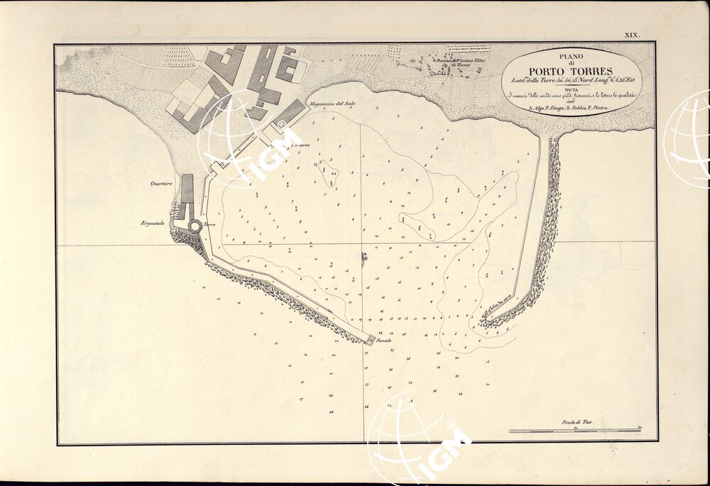 PORTOLANO DELLA SARDEGNA – CARTA IDROGRAFICA DELLA SARDEGNA LEVATA DAL CAVALIERE GIUSEPPE ALBINI CAPITANO DI VASCELLO NELLA MARINA DI S.M. SARDA – PIANO DI PORTO TORRES TAVOLA XIX.