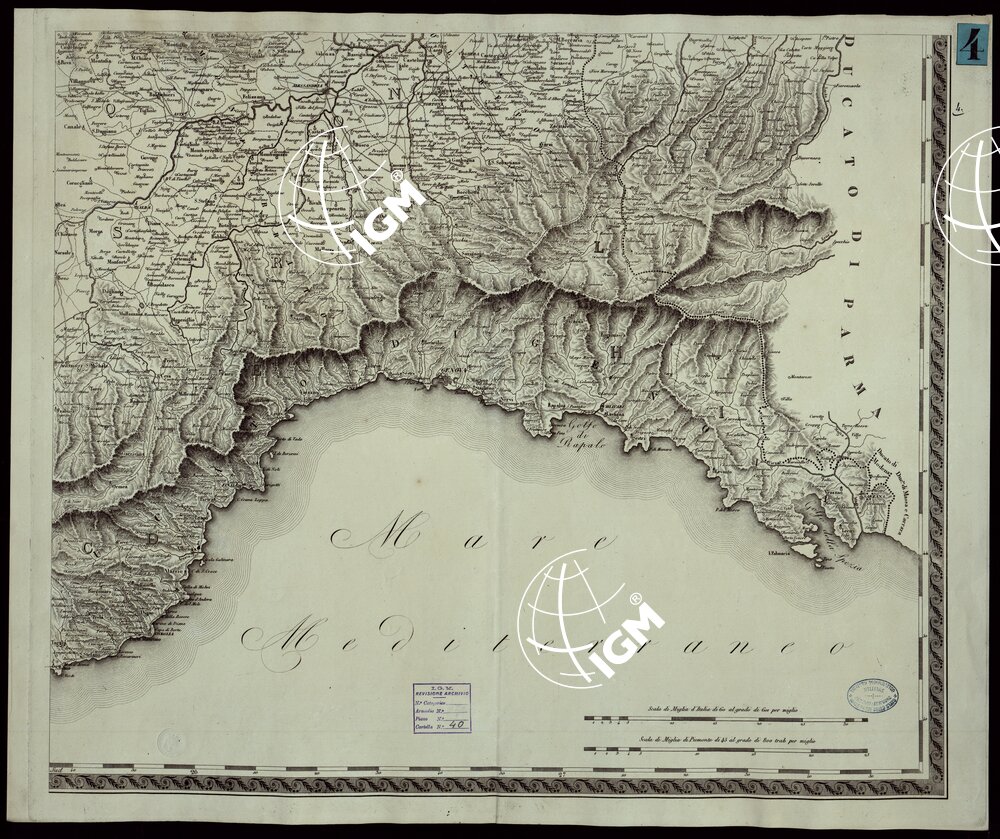 CARTA COROGRAFICA DEGLI STATI DI TERRA FERMA DI S.M. IL RE DI SARDEGNA DIVISA IN PROVINCIE E IN CANTONI DE’ MANDAMENTI SECONDO LA RECENTE FISSAZIONE FATTANE CO’ REGI EDITTI. – FOGLIO 4