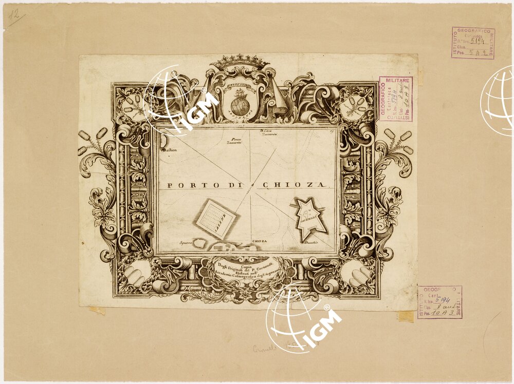 Copia dagli originali del P. Coronelli, esistenti nell’ Accademia Cosmografica degli Argonauti. A margine scriita a lapis è riportata la data 1650-1718. Rappresentazione orografica planimetrica. Aut. Padre Coronelli.