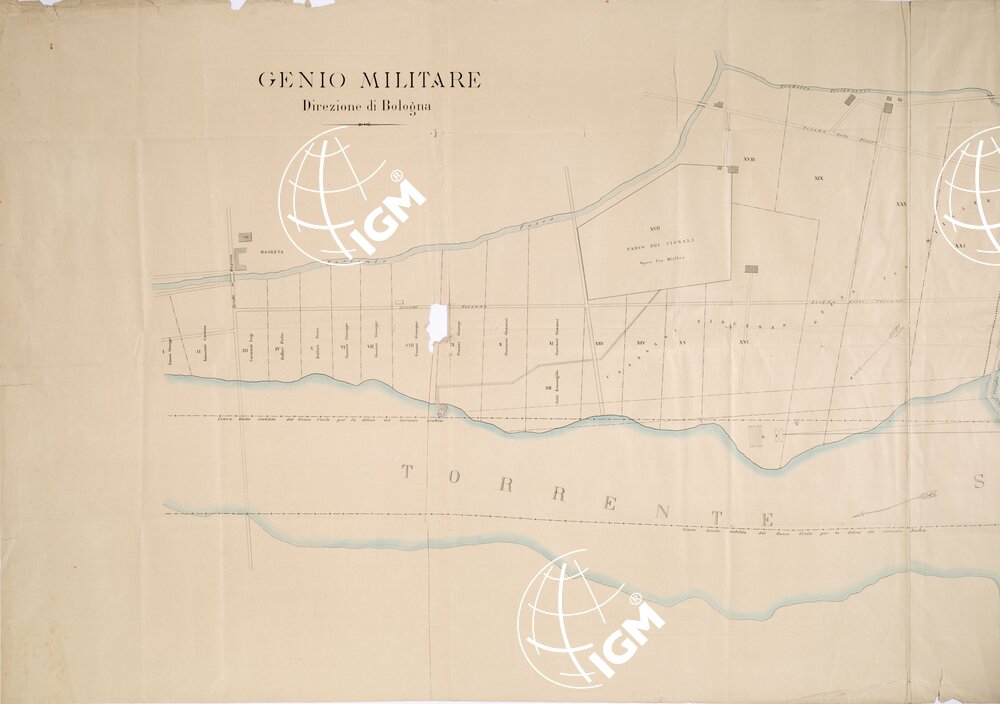 Rappresentazione orografica planimetrica. Genio Militare, Direzione di Bologna.