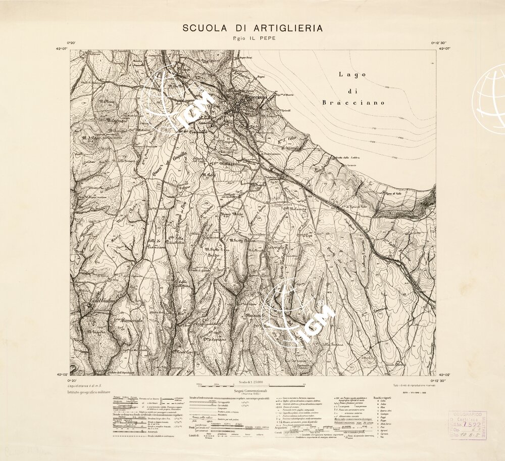 Autore I.G.M., luogo di edizione Firenze. Rappresentazione orografica a curve di livello.