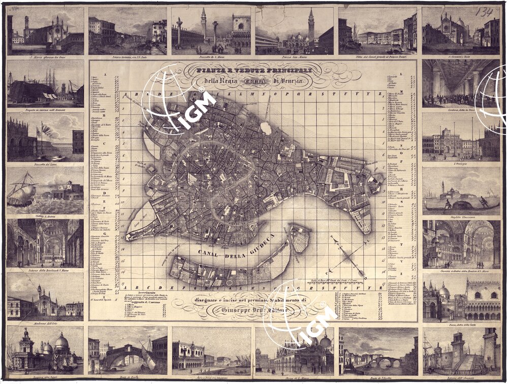 PIANTA E VEDUTE PRINCIPALI DELLA REGIA CITTA’ DI VENEZIA DISEGNATE E INCISE NEL PREMIATO STABILIMENTO DI GIUSEPPE DEYE EDITORE. (s. d.).