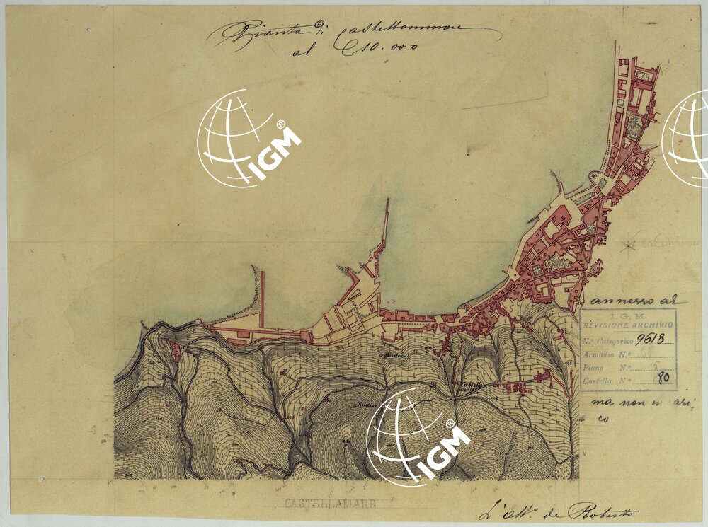 Elementi originali che hanno servito per la formazione delle tavolette della CARTA TOPOGRAFICA DEL MONTE VESUVIO RILEVATA E DISEGNATA DAGLI ALLIEVI DELL’IST. TOPOGRAFICO MILITARE NEGLI ANNI 1875-76 ALLA SCALA DI 1:10.000 archiviata in questo stesso documento (n° d’Ordine 65 – Cart. d’Arch. 80 – Docum. 9618.