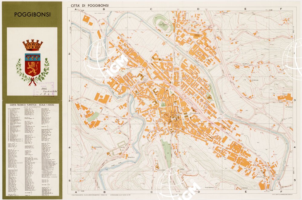 | Note foto | Carta tecnico turistica. Rappresentazione orografica a curve di livello. Rilievo aerofotogrammetrico con autorizzazione I.G.M. Ed. Studio Tecnico Bertini. |