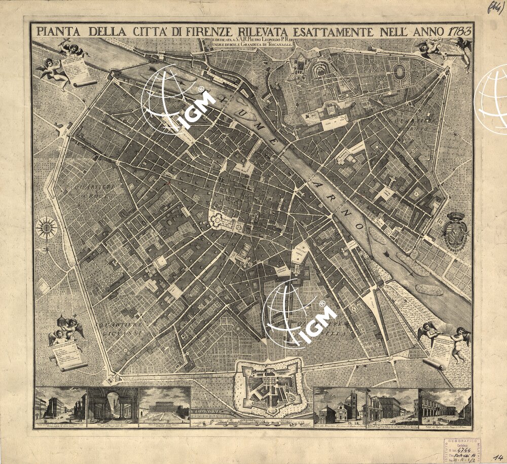 | Titolo proprio | PIANTA DELLA CITTA' DI FIRENZE RILEVATA ESATTAMENTE NELL'ANNO 1783 E DEDICATA A S. A. R. LEOPOLDO P. R DI UNGH. E DI BOE. E GRANDUCA DI TOSCANA. |