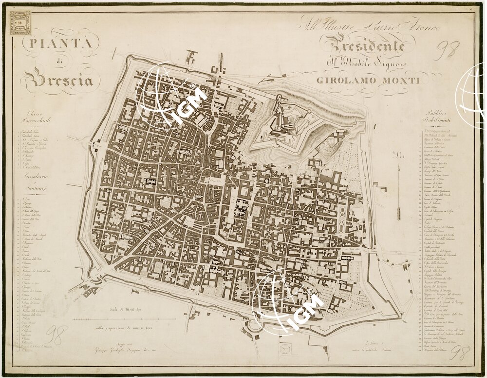PIANTA DI BRESCIA ALL'ILLUSTRE PATRIO ATENEO PRESIDENTE IL NOBILE SIGNORE GIROLAMO MONTI.