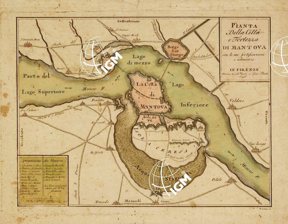 | Titolo proprio | PIANTA DELLA CITTA'E FORTEZZA DI MANTOVA CON LE SUE FORTIFICAZIONI E ADIACENZE. |