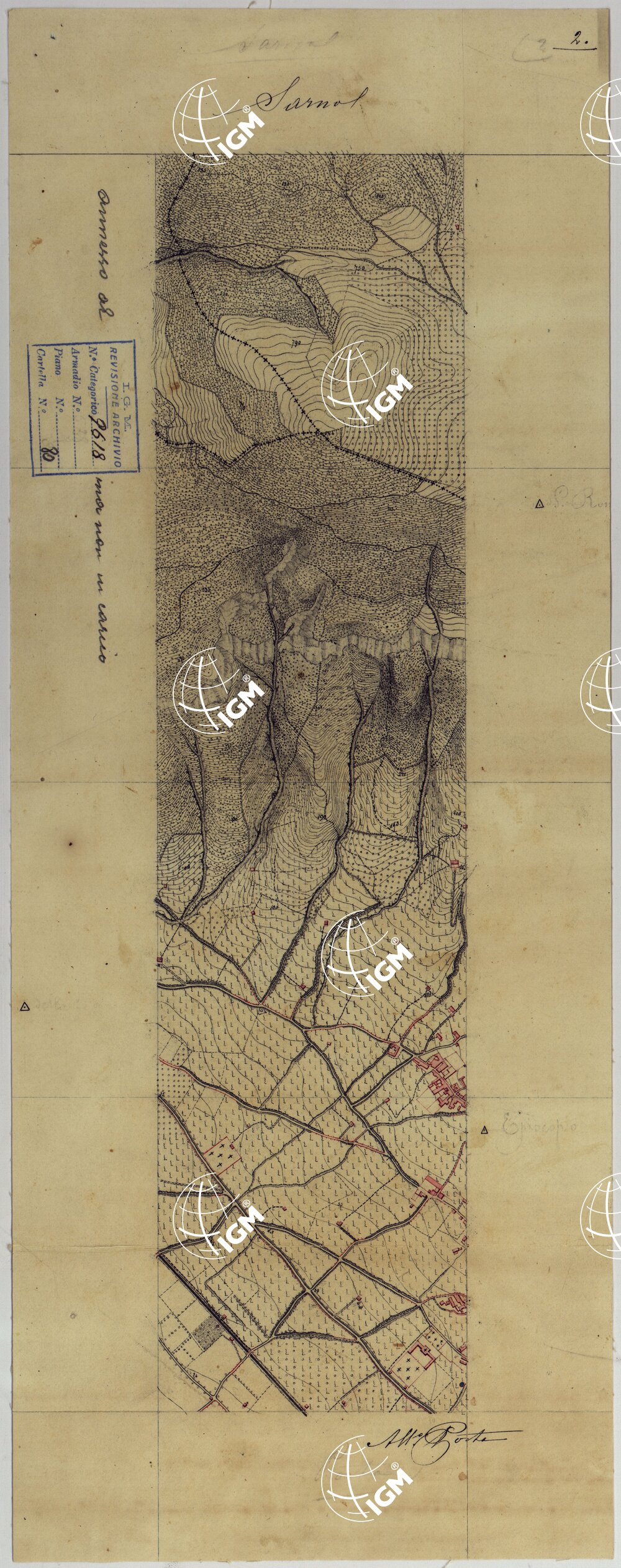 Elementi originali che hanno servito per la formazione delle tavolette della CARTA TOPOGRAFICA DEL MONTE VESUVIO RILEVATA E DISEGNATA DAGLI ALLIEVI DELL’IST. TOPOGRAFICO MILITARE NEGLI ANNI 1875-76 ALLA SCALA DI 1:10.000 archiviata in questo stesso documento (n° d’Ordine 65 – Cart. d’Arch. 80 – Docum. 9618.