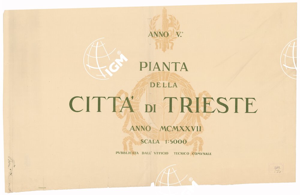 | Note foto | Rappresemtazione orografica a curve di livello. Ufficio tecnico comunale, Trieste. Stab. Tipo -Litografico G. Chiesa, Udine. |