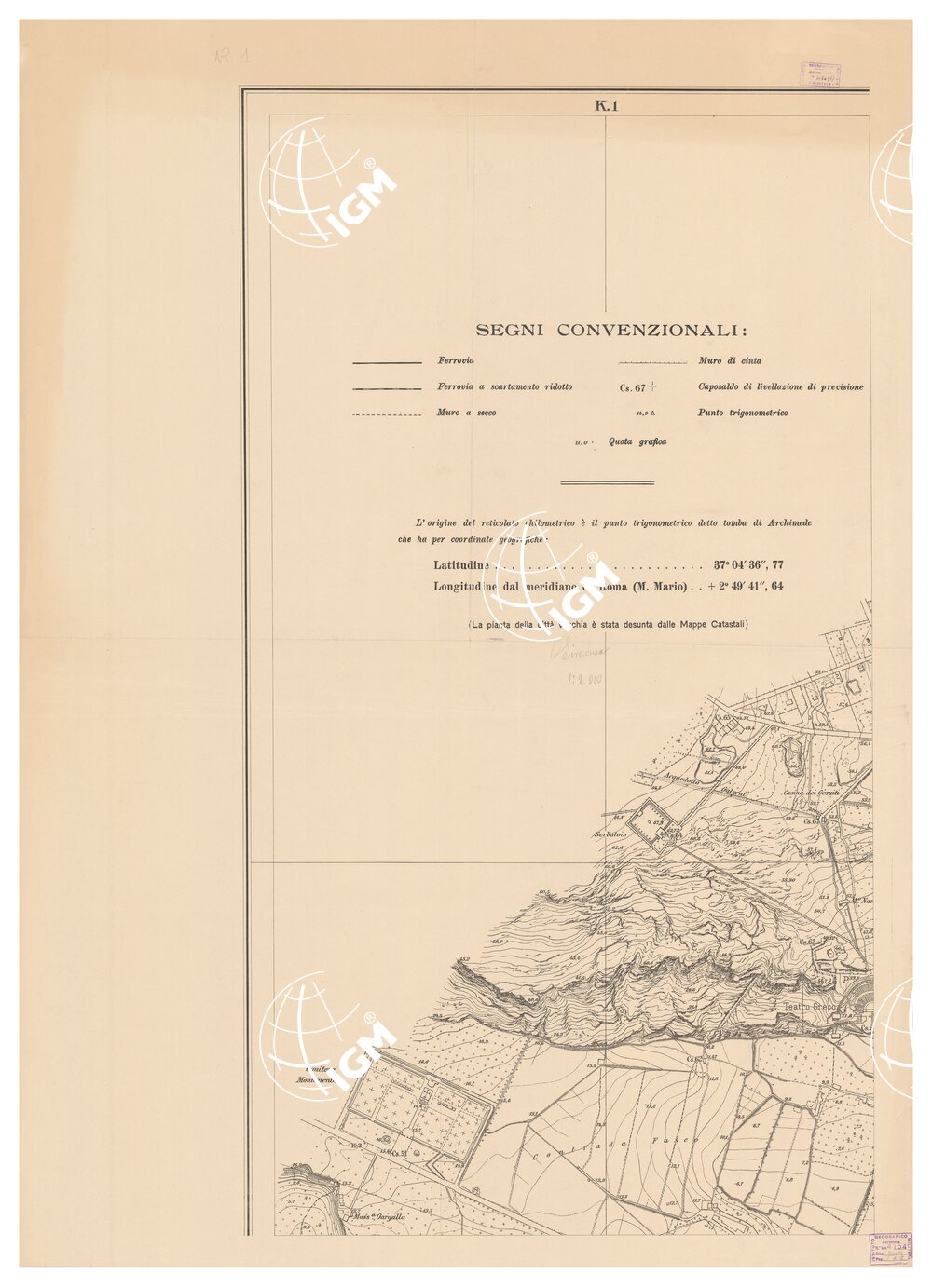 Sei fogli, ingrandimento al 2.000 dell’originale eseguito nel 1927 dai Top. Grupelli e Cantarini dell’I.G.M. Una nota avverte che la pianta della città vecchia è stata desunta dalle mappe catastali. Orografia a curve di livello. Stampa in nero. Dimensioni varie.