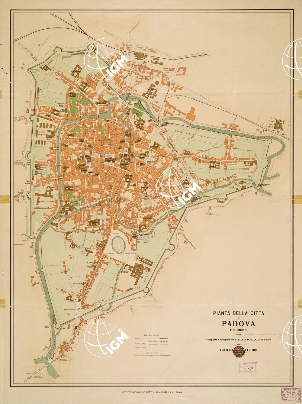 | Titolo proprio | PIANTA DELLA CITTA' DI PADOVA E SUBURBI COMPILATA E DISEGNATA DA LUIGI SALCE DI FELTRE I. G. DE AGOSTINI. ROMA |