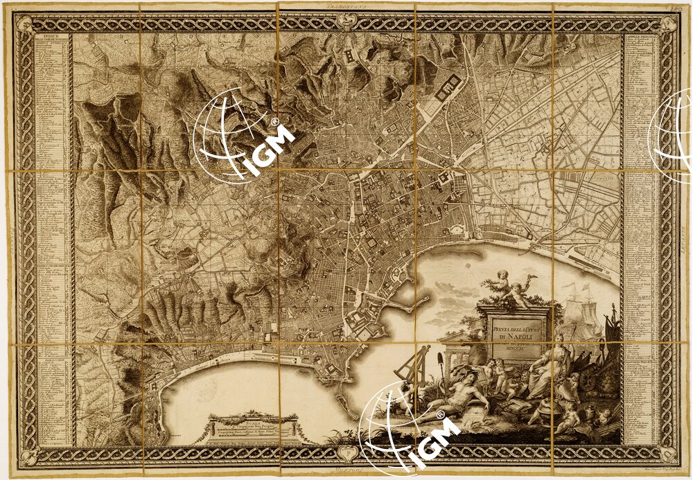 PIANTA DELLA CITTA’ DI NAPOLI COME ESISTE NEL PRESENTE ANNO MDCCXC J. A. RIZZI-ZANNONI. REG. GEOGR. ACCAD. SCIENT. PATAV. GOETING. ELECT. PALAT. ecc.