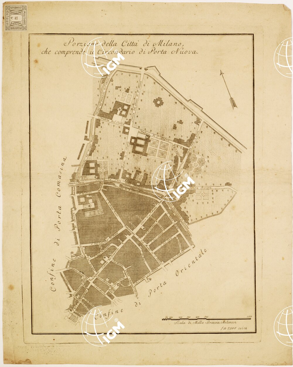 PIANTA DELLA CITTA' DI MILANO DIVISA IN CIRCONDARI. – Foglio 3 – Porzione della Città di Milano che comprende il Circondario di Porta Nuova