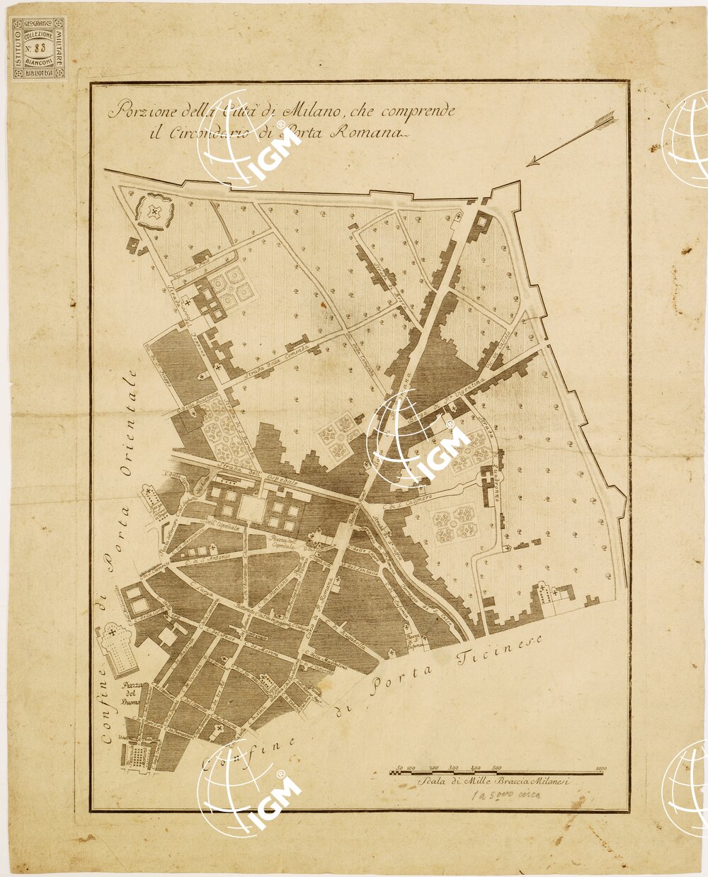 PIANTA DELLA CITTA' DI MILANO DIVISA IN CIRCONDARI. – Foglio 1 – Porzione della Città di Milano che comprende il Circondario di Porta Romana