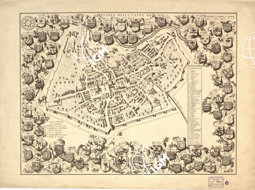 …IMPRESSA E PUBLICATA PER COMMISSIONE DELL’ILLUSTRISSIMO SIG. CONTE FABRICIO ANTONIO MONSIGNANI DAL P. CORONELLI COSMOGRAFO DELLA SERENISSIMA REPUBLICA DI VENETIA.