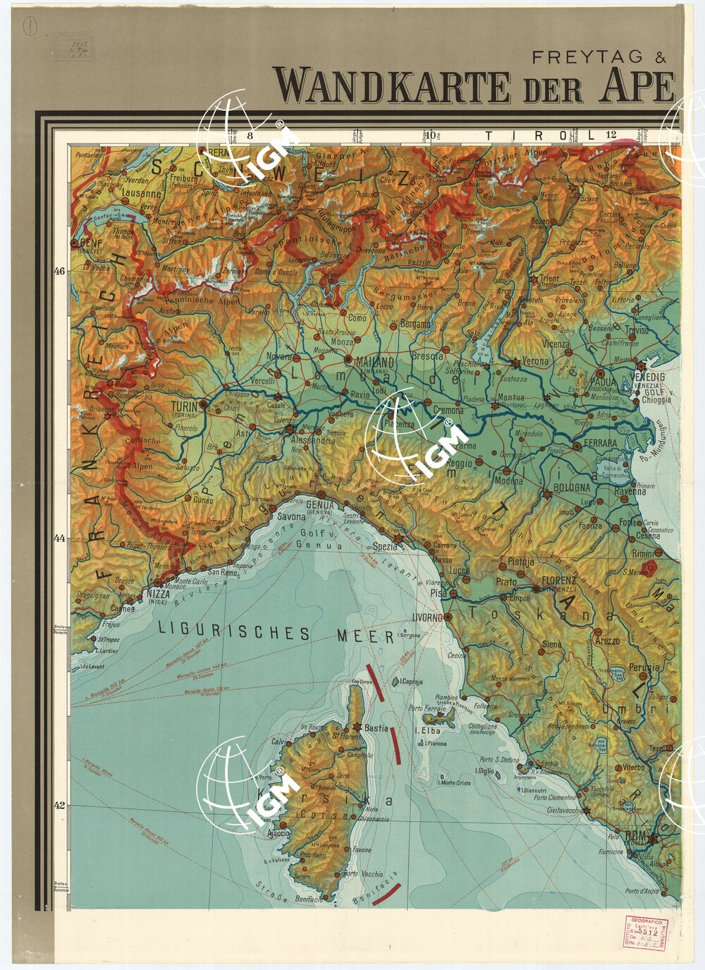 Autore Freytags & Nerndt.Luogo di edizione Vienna. Rappresentazione orografica a tinte ipsometriche.