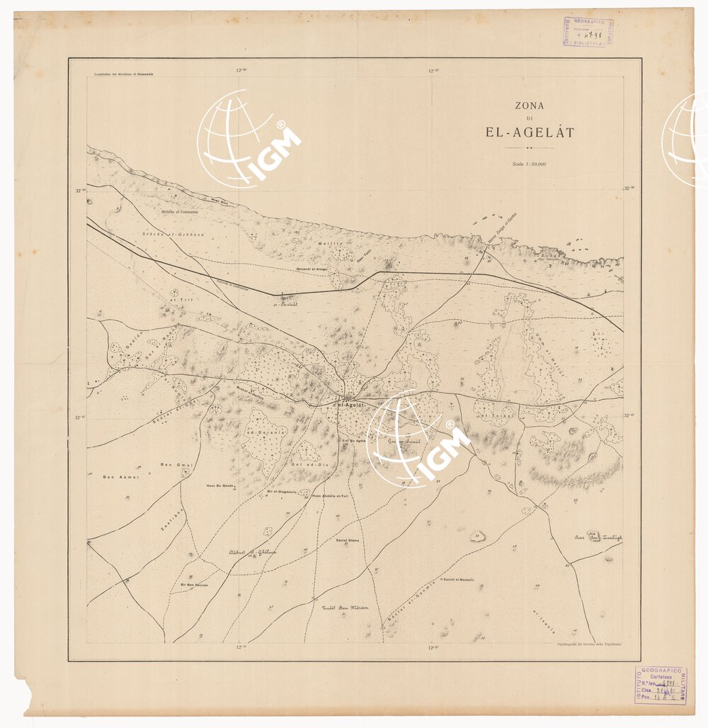 Un foglio in tipolitografia in nero. Vi sono indicate le strade, i pozzi ed i limiti delle vegetazioni.