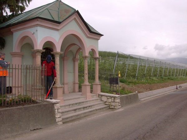 [{"simbolo_contrassegno":"B4","materializzazione":"(CSO) – Centrino universale infisso alla sommit\u00e0 del muro di contenimento con ringhiera del tabernacolo a sinistra delle scale di accesso."}]
