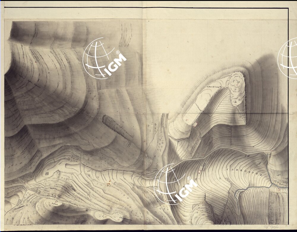 Ingrandimento al 5000 del documento n. 24, consta di otto fogli acquerellati firmati Brignone, Burzio, Ing. Conti, e tutti vistati dal barone Monthoux.