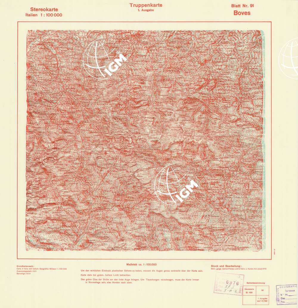 Rappresentazione orografica a curve di livello. Grafia italiana tedesca. I.G.M. (FI).