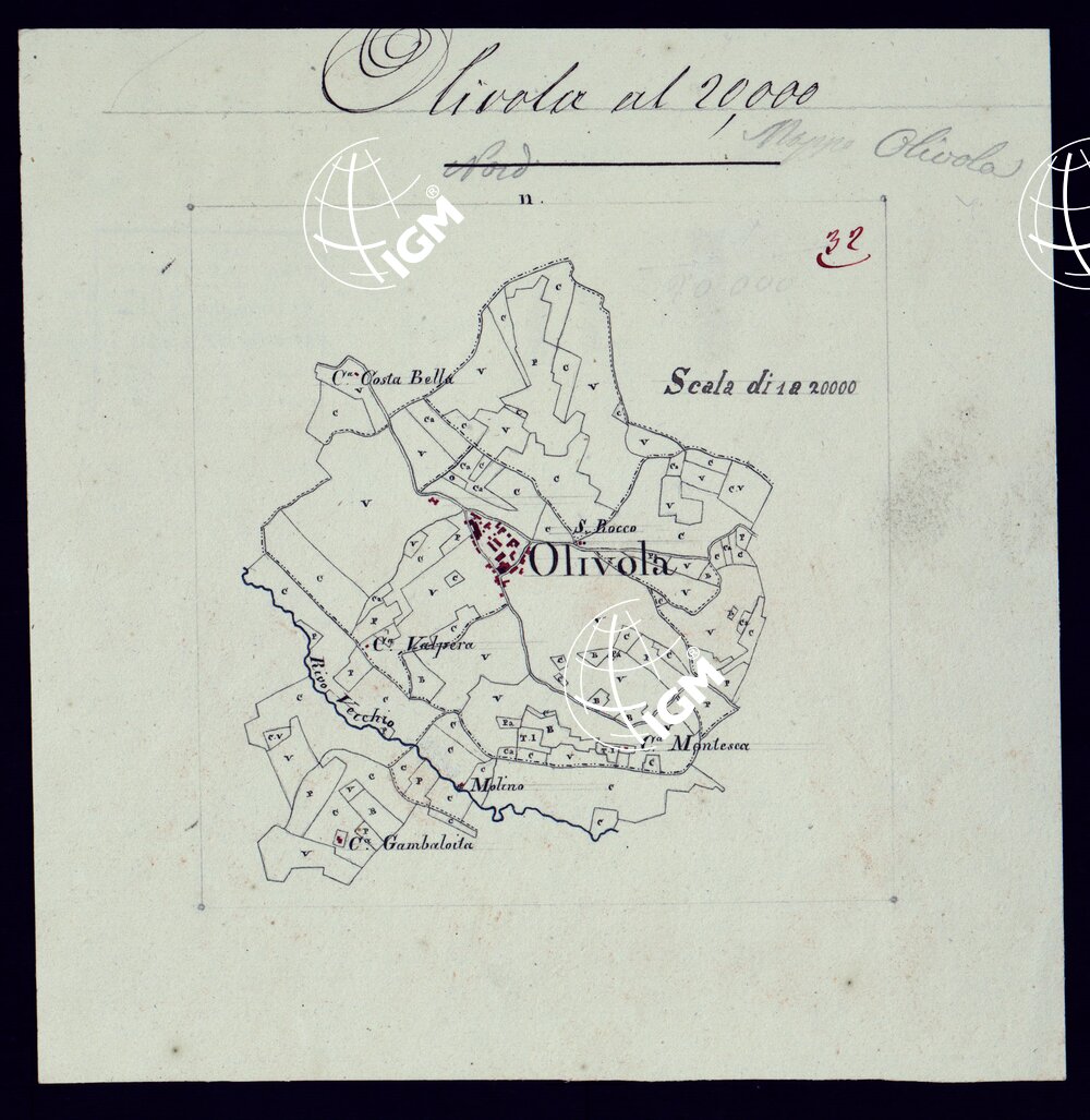 Gruppo di 51 mappe catastali di diversi comuni, impiegate con tutta probabilità per la costruzione della carta generale degli Stati Sardi al 50.00. Senza firma, eccetto due, firmate da Lagrange, una riduzione delo piano catastale del territorio d’Ivrea firmato Valsecchi 1822, e una riproduzione dei piani catastali di comuni della provincia d’Ivrea firmata Cap. Roggero.
