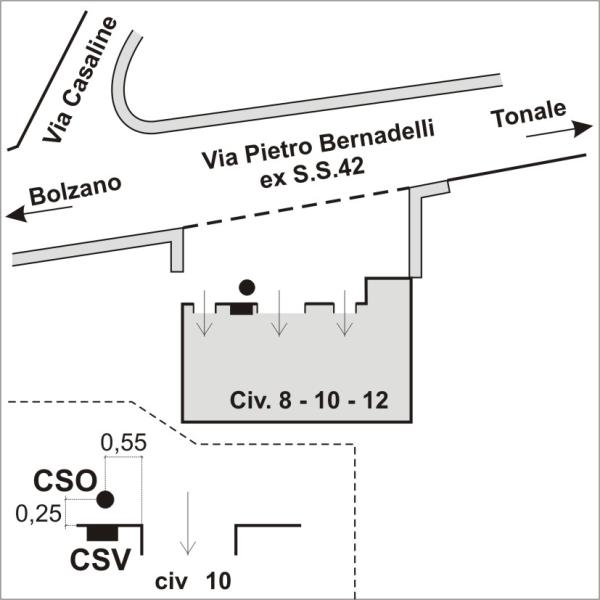 [{"simbolo_contrassegno":"P5","materializzazione":"(CSO) – Pozzetto di IV categoria rialzato con tubo in pvc e tappo in ghisa di copertura posto a destra del portone del civico 10 di Via Benardelli di piano Commezzadura."},{"simbolo_contrassegno":"V1","materializzazione":"(CSV) – Mensola infissa in corrispondenza del CSO."}]