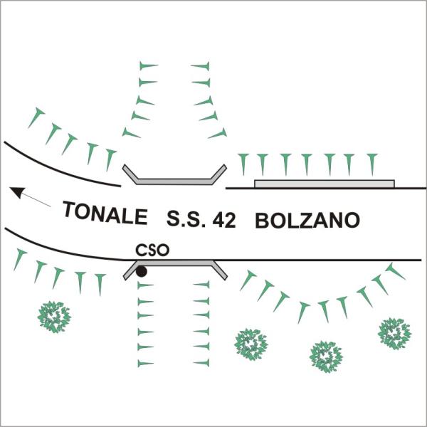 [{"simbolo_contrassegno":"B1","materializzazione":"(CSO) – Bullone infisso all'esterno del cordolo di valle di sostegno del guard-rail nel lato rivolto al Tonale."}]