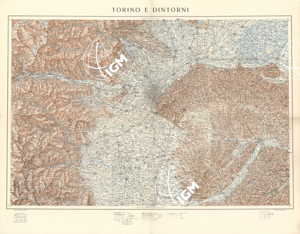 Rappresentazione orografica a curve di livello e sfumo. In basso è presente la legenda dei segni convenzionali. I.G.M. (FI).