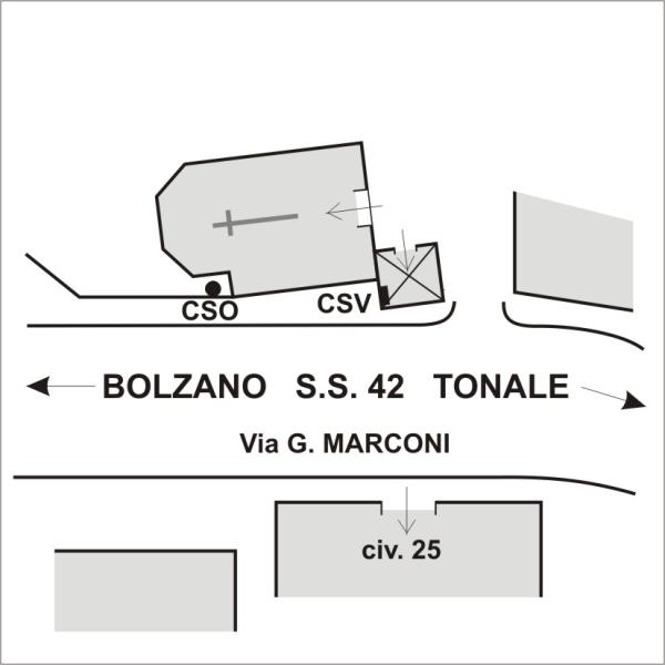 [{"simbolo_contrassegno":"B1","materializzazione":"(CSO) – Bullone infisso nel muro di contenimento della strada adiacente alla chiesa in corrispondenza all'accesso allo scannafosso."},{"simbolo_contrassegno":"V1","materializzazione":"(CSV) – Mensola infissa nella facciata laterale del campanile , nel lato rivolto a Bolzano."}]